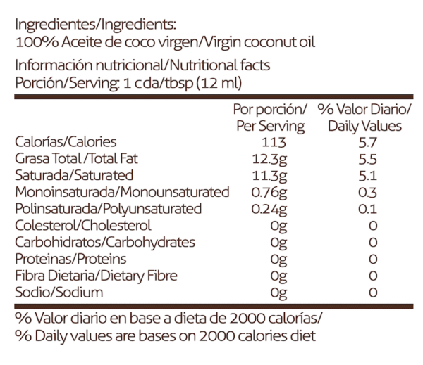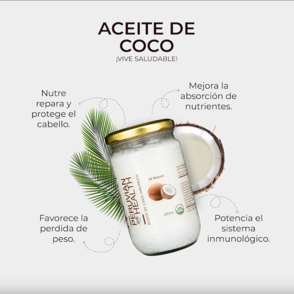 Aceite de coco de calidad premium, orgánico certificado, virgen y 100% natural. Un producto versátil infaltable en todo hogar, totalmente libre de químicos y prensado en frío para mantener todas sus bondades.