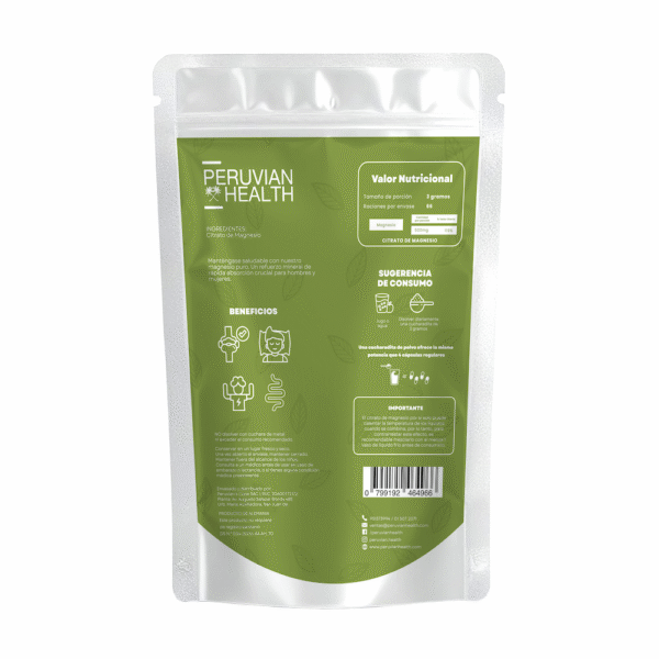 Manténgase saludable con nuestro citrato de magnesio puro, un refuerzo mineral de rápida absorción crucial para hombres y mujeres, muy conveniente para incorporar en tu rutina diaria.