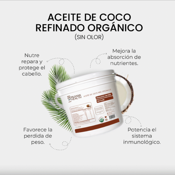 Aceite de Coco Refinado Orgánico (sin olor) 4L