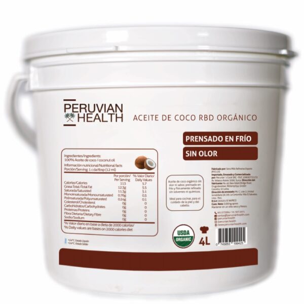 1 valoración en Aceite de Coco Refinado Orgánico (sin olor) 4L